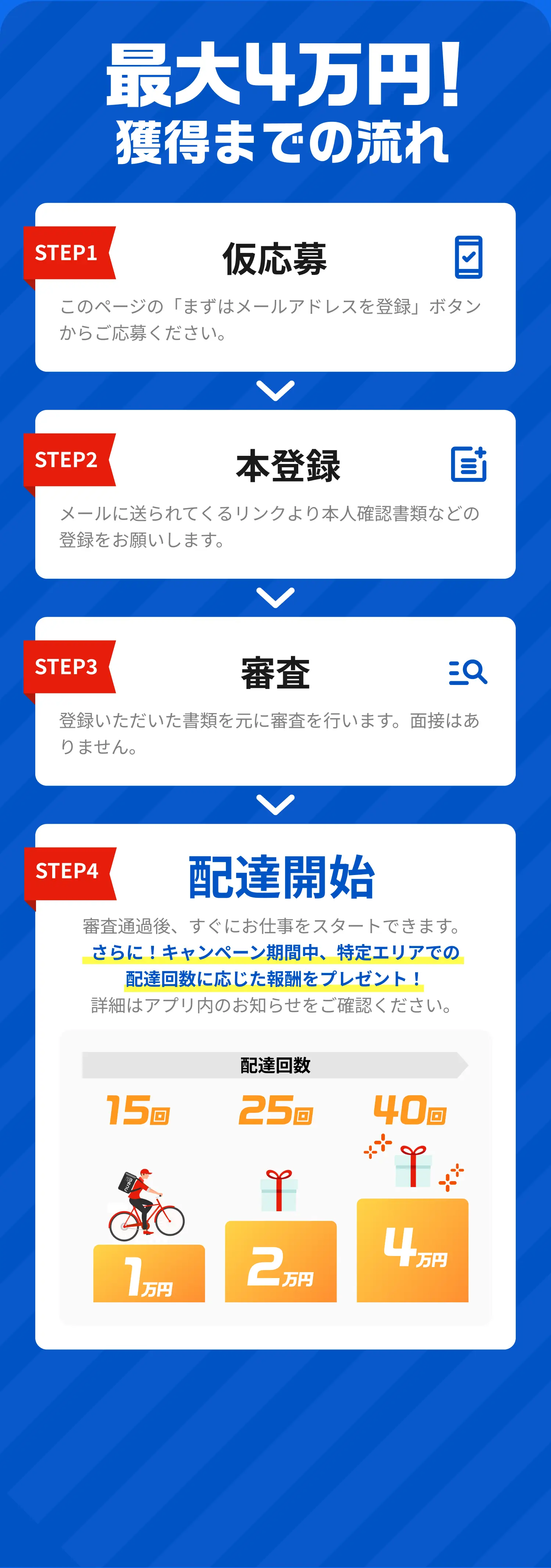 配達を続けることで、収入アップを狙えます。